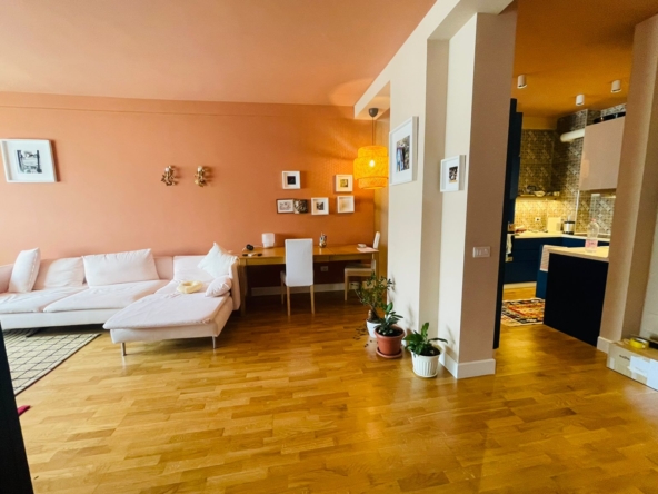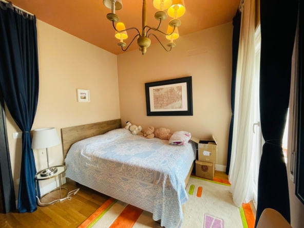 Apartamenti ka siperfaqe 105 m2 dhe ndodhet ne katin e 4 te nje pallati te ri.