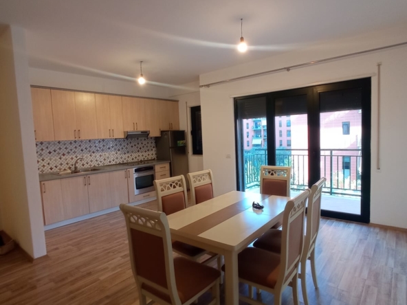 - Hapësira e Brendshme: I organizuar në mënyrë praktike, ky apartament ka një dhomë ndenjeje të madhe që lejon krijimin e një ambienti të ngrohtë. Dritaret e mëdha ofrojnë pamje të bukur dhe ndriçim natyror.